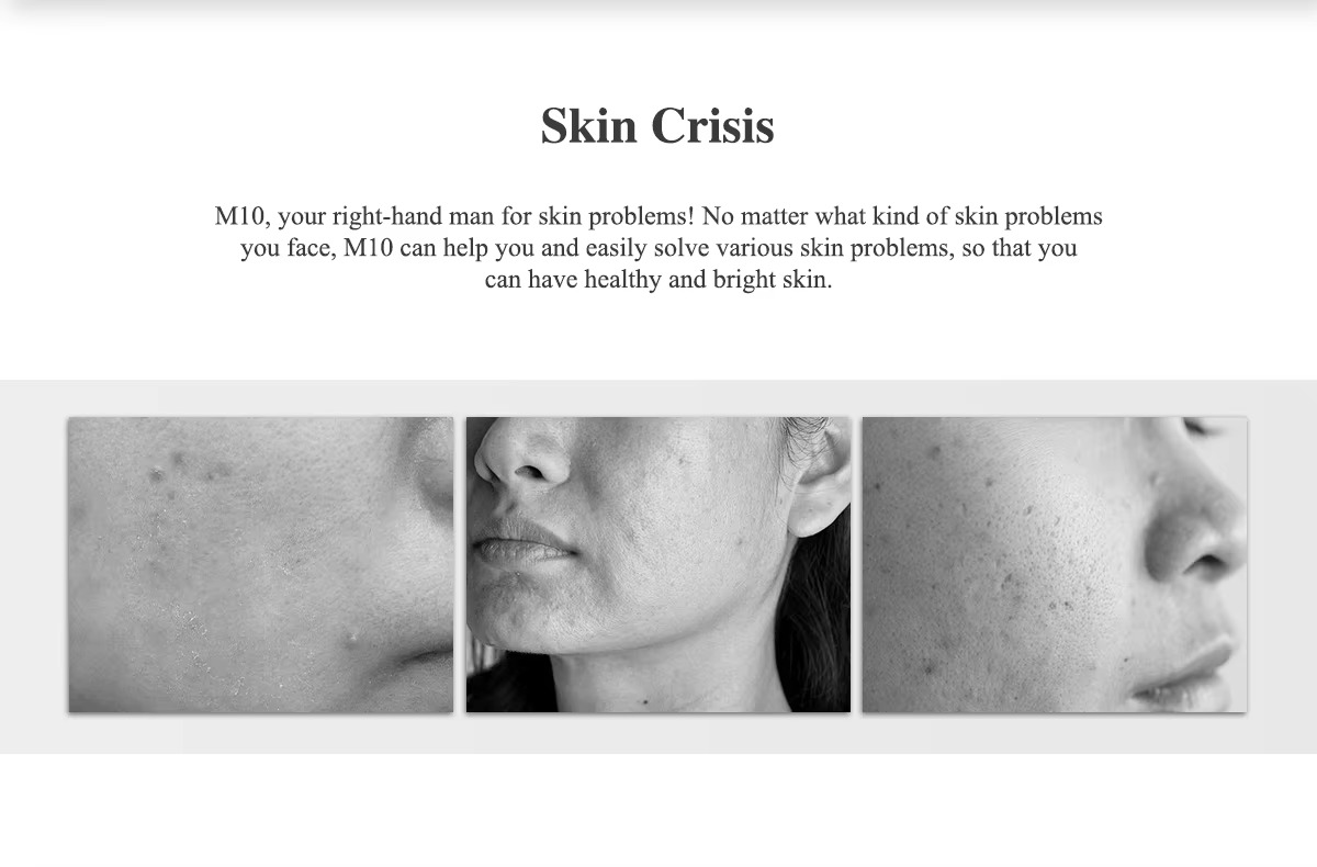 M10, your right-hand man for skin problems! No matter what kind of skin problemsyou face, M10 can help you and easily solve various skin problems, so that youcan have healthy and bright skin.